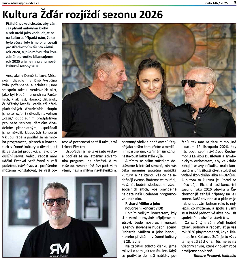 - 251219 ŽĎÁRSKÝ PRŮVODCE Kultura Žďár rozjíždí sezonu 2026
