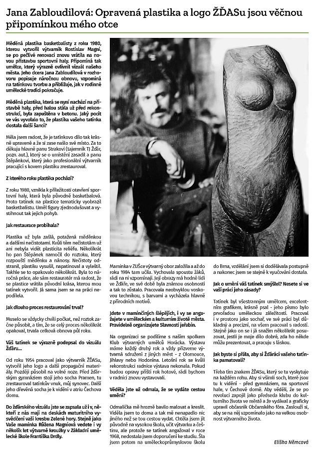 - 251219 ŽĎÁRSKÝ ZPRAVODAJ Jana Zabloudilová Opravená plastika a logo ŽĎASu jsou věčnou připomínkou mého otce