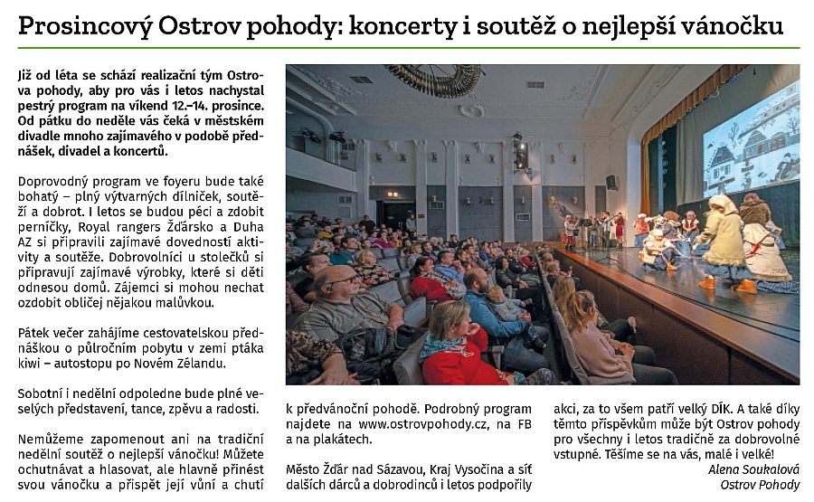 - 251219 ŽĎÁRSKÝ ZPRAVODAJ Prosincový Ostrov pohody koncerty i soutěž o nejlepší vánočku